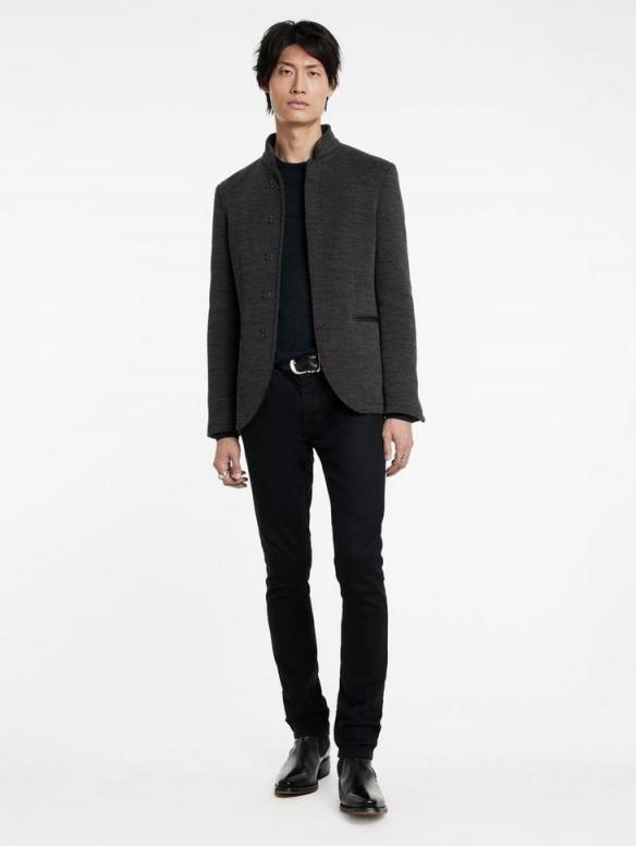 Luxurious wool blend constructs our Dorean Jacket, defined by its slim fit and innovative hook and bar closure. Expertly crafted from jacquard jersey wool fabric, the jacket offers a unique handfeel due to the twisted yarn, while a modern revision of the classic small check pattern enhances its visual appeal. This silhouette, tailored with wired inserts, allows for personalized shaping, presenting a sleek and refined profile. The Dorean Jacket, distinguished by its meticulous style and craftsmanship, accentuates your form with strategic cuts and subtle detailing, embodying timeless sartorial elegance with a contemporary edge. 75% Wool, 25% Polyamide Dry Clean Only Slim Fit Hook & Bar Closure Wire Inserted Collar Small Check Pattern Made in Italy Measurements: Body Length: 77cm, Chest Width (Flat): 53.5cm”, Shoulder Width: 47cm, Sleeve Length: 66cm
