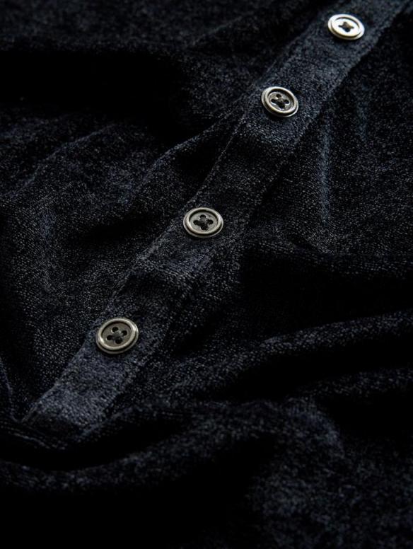 The Rosario Henley marks a new chapter in tactile luxury, blending velour with the soft allure of velvet. Sourced from Portugal, this fabric envelopes you in unmatched opulence that captivates both the eye and the touch. Enhanced with antiqued metal buttons at the chest, this regular-fit henley bridges traditional style with a bold, rebellious edge. Command comfort and audacity in your wardrobe with this distinctive take on our classic henley. 85% Ecovero CV, 15% Recycled PES Machine Wash Cold Crew Neck Long Sleeve Regular-Fit Antiqued Metal Buttons Made in Portugal Measurements: Body Length: 27″, Chest Width (Flat): 20.25″, Sleeve Length: 34.5″