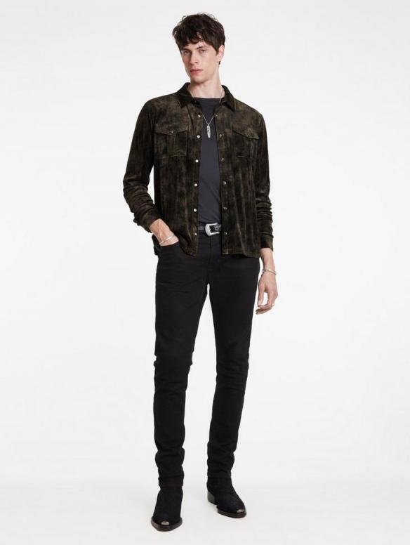 Velvet takes on a new persona this season with our Ferentino Collar Shirt. Cast in a luxurious deep chocolate hue, the crinkled velvet is artfully distressed for a unique appearance. Featuring box-pleated chest pockets and pearlized shell snap closures, this regular-fit shirt merges sophistication with a touch of the unexpected. 100% Polyester Dry Clean Only Regular-Fit Collar Long Sleeves Crinkled Velvet Box-Pleated Chest Pockets Pearlized Shell Snap Closure Measurements: Front Body Length: 28.5″, Chest (Flat): 21.75″, Sleeve Length : 34.75″